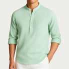Elegant yet casual – this men's stand-up collar shirt adds a special touch to any look. Crafted from soft cotton and breathable, vegan performance fabric, it offers lightness, comfort, and a modern style for warm days and stylish appearances.